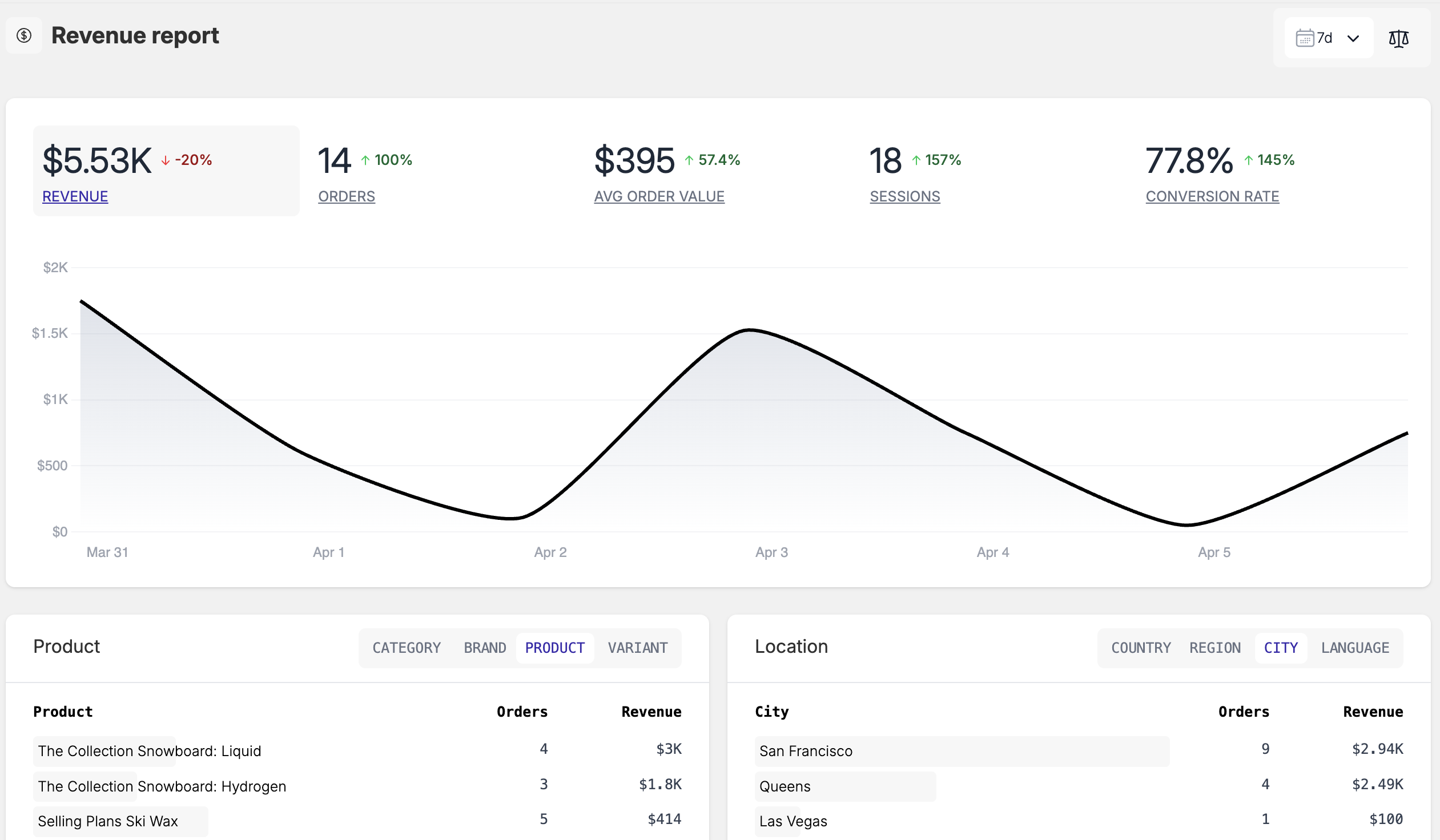 With simplified single button click, reveal the performance changes compared to previous period.